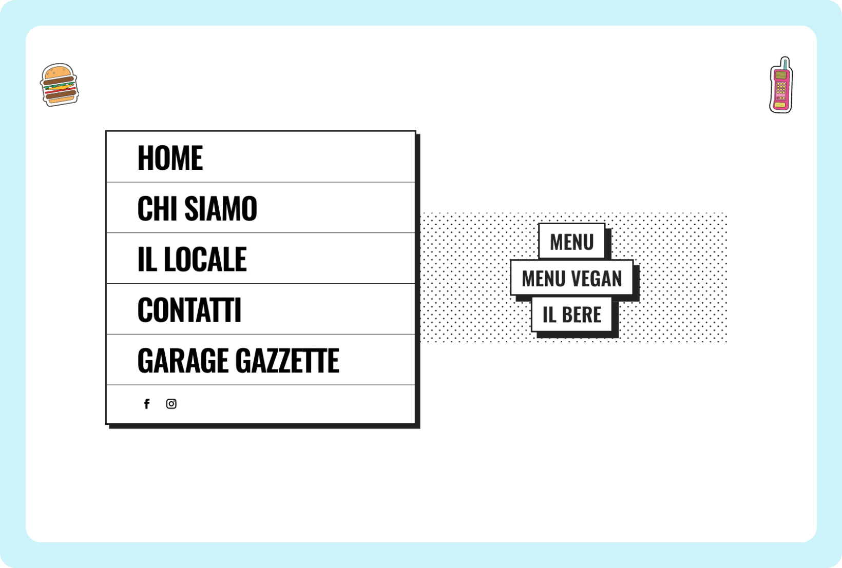 L’obiettivo era definire un’identità visiva coerente e riconoscibile per Garage Pub, lavorando su tutti i punti di contatto — dal logo al menù, dalla comunicazione social fino agli interni — per costruire un universo grafico che raccontasse al meglio la filosofia del locale e il suo immaginario.