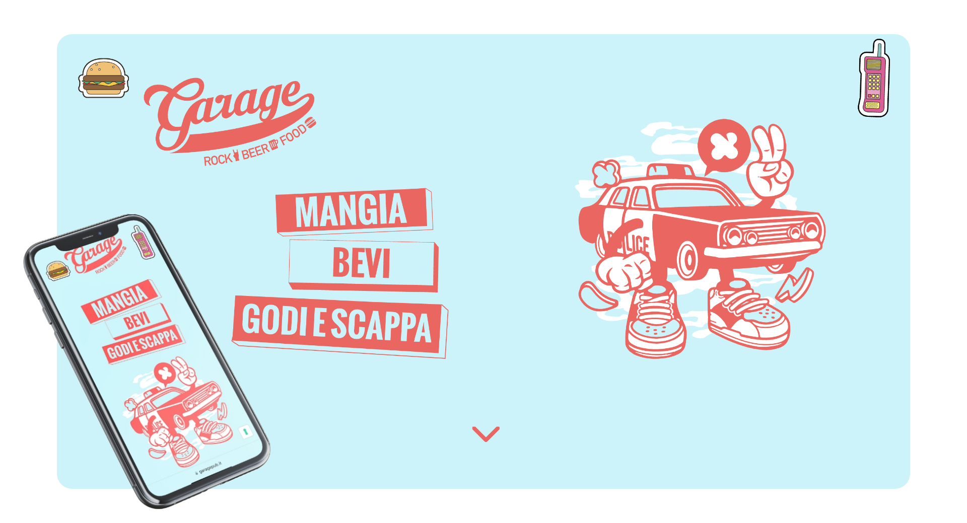Il lavoro è partito da un’osservazione attenta dell’estetica del pub e dei suoi riferimenti: dettagli vintage, luci al neon, suggestioni cinematografiche e musicali. Il concept grafico si è quindi sviluppato attorno a un’idea di “mondo” Garage: un contenitore pop, volutamente sopra le righe, capace di evocare in modo diretto e giocoso l’esperienza del locale.
