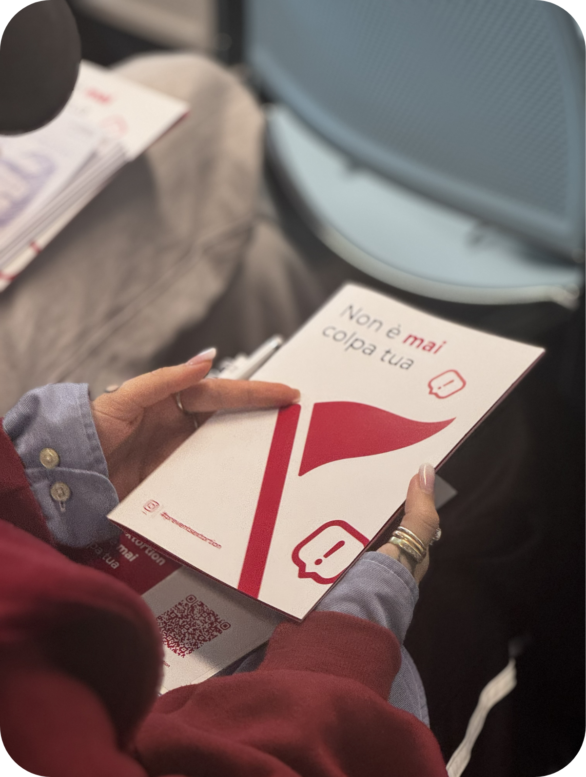 Il nostro lavoro ha contribuito a rendere questo messaggio visibile, tangibile, condivisibile — trasformando il segno della red flag in un simbolo di prevenzione e di forza collettiva.