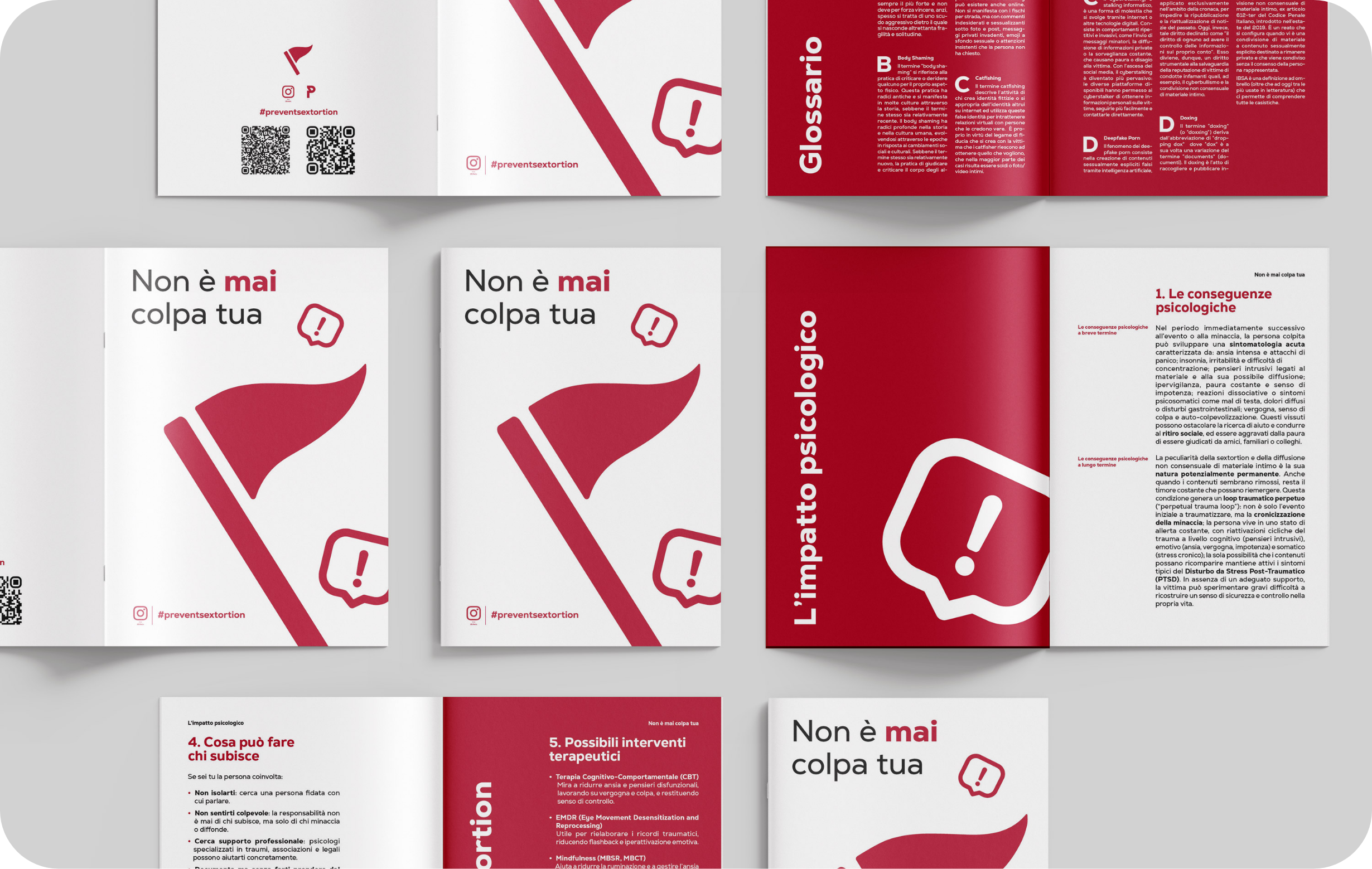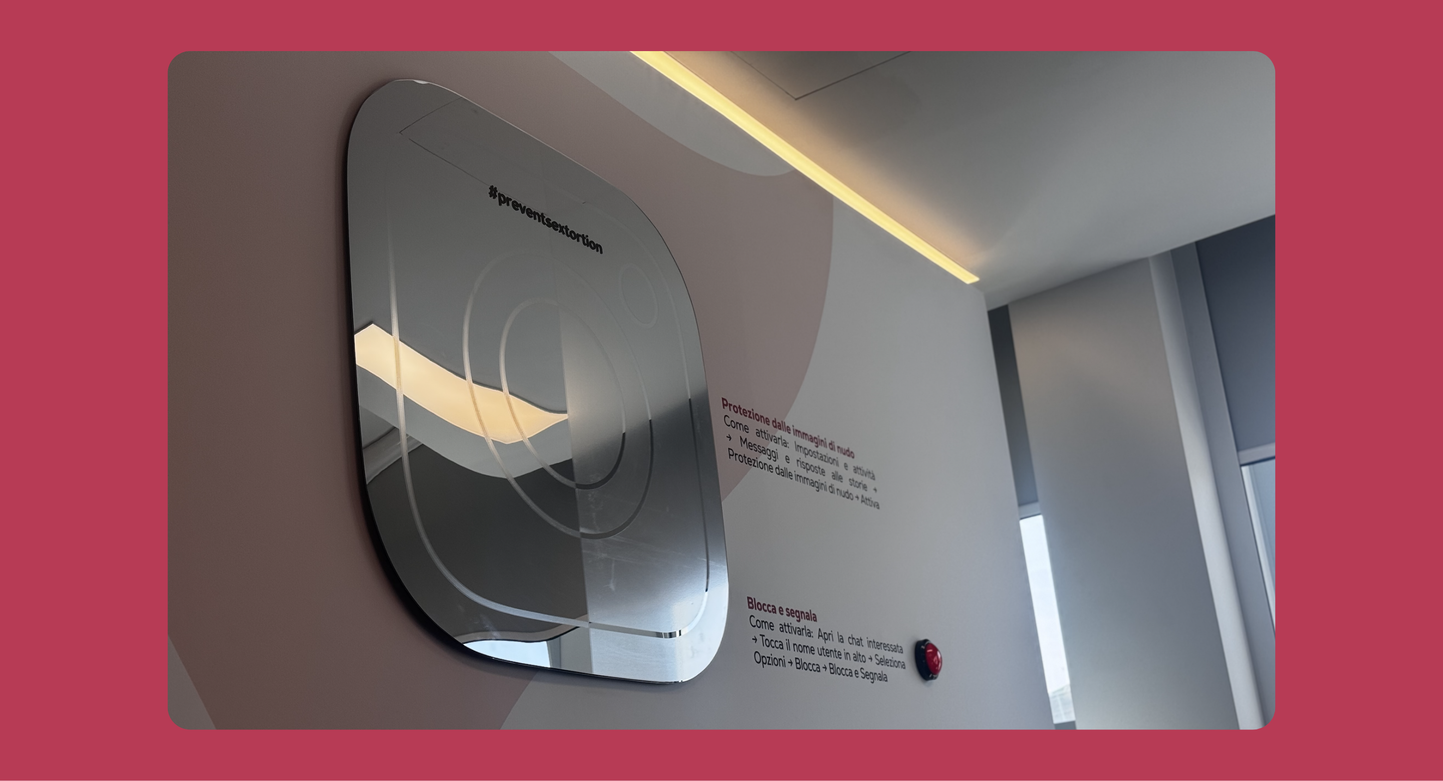 Il progetto nasce dalla richiesta di Meta di sviluppare l’identità visiva e gli allestimenti per un evento dedicato alla campagna “Non è mai colpa tua” – #preventsextortion, promossa per sensibilizzare sul tema della sextortion e per presentare i nuovi strumenti di sicurezza introdotti su Instagram.